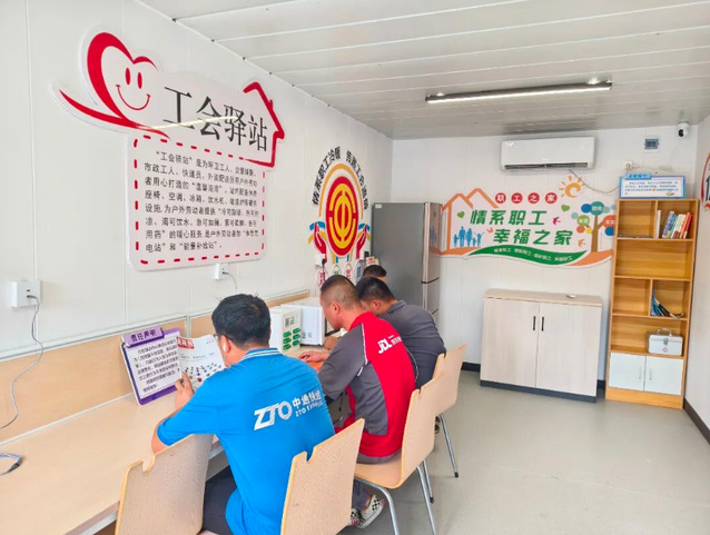 走進(jìn)驛站,貼心服務(wù)隨處可見(jiàn)。休息區(qū)里,桌椅整齊擺放,書(shū)架上時(shí)事新聞、生活常識(shí)、文學(xué)佳作等書(shū)刊琳瑯滿目,為忙碌的心靈提供休憩空間;墻上排列的手機(jī)充電設(shè)備隨時(shí)“待命”,冰箱里的應(yīng)急物品、顯眼處的醫(yī)療急救包、可加熱食物的微波爐,從日常需求到應(yīng)急保障,全方位解決勞動(dòng)者的實(shí)際難題。值得一提的是,考慮到雨雪等天氣變化帶來(lái)的出行不便,驛站會(huì)常備雨傘供戶外工作者取用,為他們遮風(fēng)擋雨;進(jìn)入寒冷季節(jié)后,驛站則提前開(kāi)啟暖氣,幫助他們驅(qū)散寒意。這些服務(wù)精準(zhǔn)落實(shí)了“冷可取暖、熱可納涼、渴可飲水、累可歇腳、傷可用藥”的服務(wù)目標(biāo)?!拔覀儾粩嗌?jí)服務(wù),希望戶外勞動(dòng)者們?cè)谶@里能全方位地感受到細(xì)致入微的關(guān)懷?!焙游髦脴I(yè)相關(guān)負(fù)責(zé)人表示。