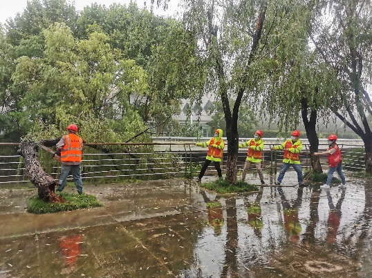 陣風(fēng)10級以上、平均風(fēng)力8級,接連數(shù)天雨水不斷,7月27日,“煙花”中心過境我市,為進一步將“我為群眾辦實事”實踐活動落到實處,進一步體現(xiàn)黨員的先鋒帶頭作用,公司迅速組建黨員先鋒隊,協(xié)助綠化養(yǎng)護人員巡查檢查、清理斷枝、搶險倒伏樹木。