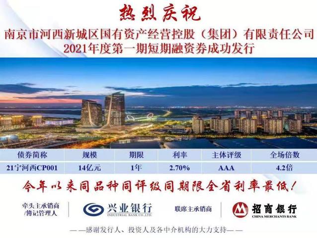 南京市河西新城區(qū)國有資產(chǎn)經(jīng)營控股(集團(tuán))有限責(zé)任公司(以下簡稱“河西集團(tuán)”)成功發(fā)行2021年度第一期短期融資債券。