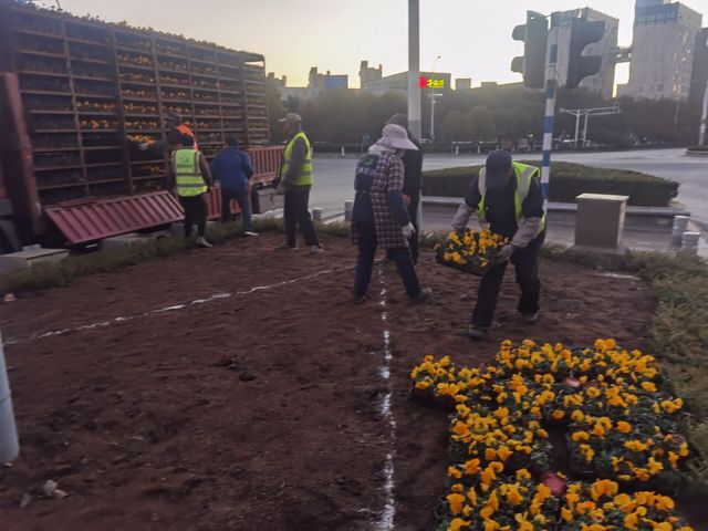 冬季的清晨,寒意逼人,園林工匠們卻干的熱火朝天。清理秋季草花、施肥整地,根據(jù)更換方案,對(duì)草花花色進(jìn)行合理搭配,以求達(dá)到花色鮮艷、品種豐富的景觀效果。在植物配置時(shí),進(jìn)行了圖案設(shè)計(jì),如河西大街長方形套圖、樂山路、奧體大街花境設(shè)計(jì)布置等,構(gòu)成了一幅幅靈動(dòng)活潑的圖畫,不僅美化了城市景觀效果,也為冬季出行的市民呈現(xiàn)了一道靚麗的風(fēng)景線。