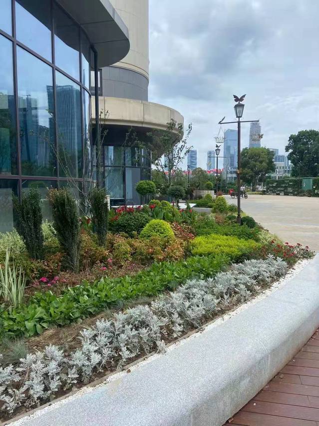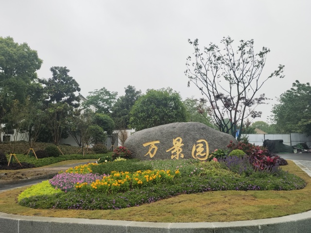 萬(wàn)景園北入口項(xiàng)目將原始花壇改造成弧形整石花壇,常夏石竹、八仙花、女貞球等彩葉花灌木鋪滿(mǎn)在景觀(guān)石的四周,形成植物品種豐富、層次分明的小型花境。入口處增設(shè)標(biāo)有“萬(wàn)景園”字樣高達(dá)12米的立牌,高大醒目,與魚(yú)嘴公園、青年文化公園、綠博園形成了統(tǒng)一的濱江風(fēng)光帶入口標(biāo)識(shí)。