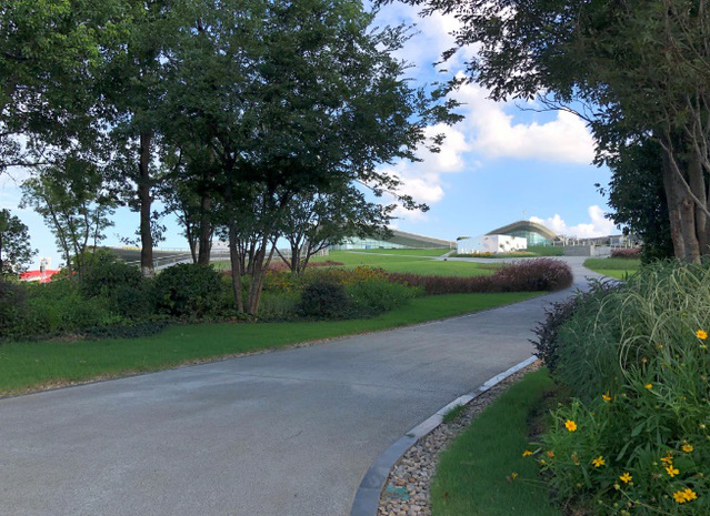 綠博園東入口項(xiàng)目在綠植選用上注重運(yùn)用彩葉樹(shù)種,中山紅、佛甲草、南天竹等彩葉喬灌木,襯托在綠茵茵的草坪上,增強(qiáng)了觀(guān)賞效果。大面積的花崗巖鋪裝,弧形路牙石花壇、多色植物搭配,形成了空間開(kāi)闊、環(huán)境優(yōu)美的公園出入口景觀(guān)。