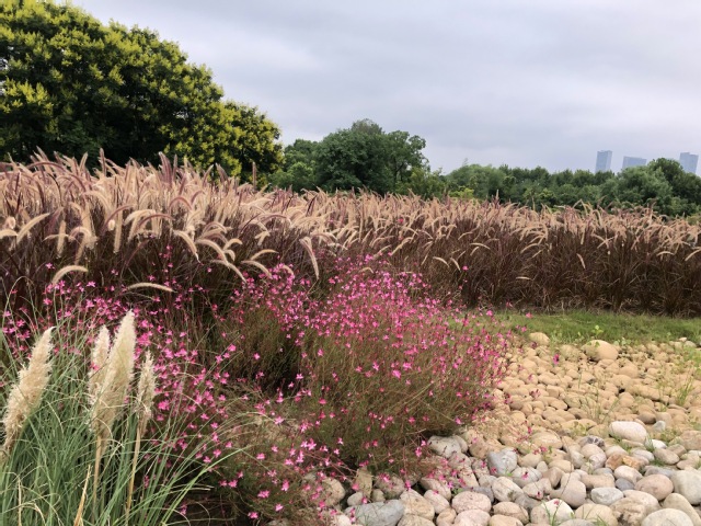 紫金文創(chuàng)園屋頂花園提升項(xiàng)目將植物配置進(jìn)行全面提檔升級(jí),把原有枯黃退化、高低不平的狗牙根草地進(jìn)行翻新整地,栽植了薄雪萬(wàn)年草,紅葉景天,粉黛亂子草、紫穗狼尾草等灌木和草本植物,既保證了屋頂承重的要求,又形成了野趣的屋頂景觀(guān)效果。