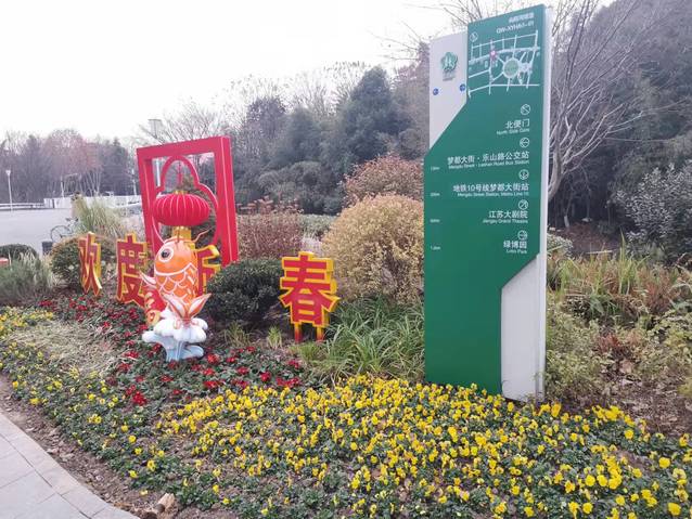 南京奧體中心北門夢都大街人行道旁新增設(shè)一組 “歡度新春”花境式小品生態(tài)微景觀,深紫色羽衣甘藍(lán)與黃色三色堇植物的搭配,簡潔明了,“鯉魚躍龍門”小品和“歡度新春”字樣的組合營造出濃濃的年味。道路中分帶的花球換上了“新裝”,4個巨大的羽衣甘藍(lán)花球在太陽下盡情地綻放著,烘托出了冬奧會的隆重氣氛,寓意在歡度新春佳節(jié)之際,祝愿冬奧會的奧運健兒們能夠魚躍龍門創(chuàng)佳績。