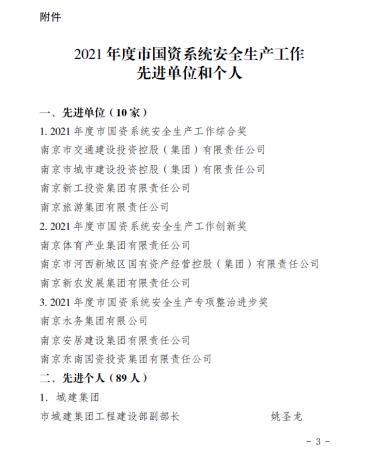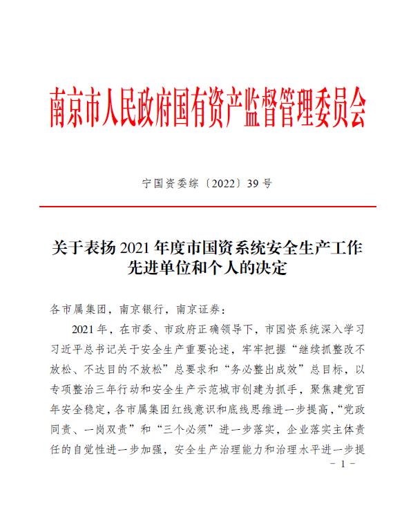 近日,河西集團(tuán)獲得南京市安委會(huì)2021年度安全生產(chǎn)工作優(yōu)秀單位、南京市國(guó)資系統(tǒng)2021年度安全生產(chǎn)工作先進(jìn)單位和市國(guó)資系統(tǒng)安全生產(chǎn)工作創(chuàng)新獎(jiǎng)。王銘周、王凱、崔洪暢、谷影偉、馬紫琳、史偉強(qiáng)等6人被評(píng)為2021年度南京市國(guó)資系統(tǒng)安全生產(chǎn)先進(jìn)個(gè)人。