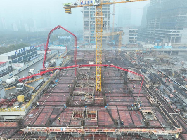 1月3日,河西金融中心項目塔樓及裙樓正負零板澆筑完成,比原計劃提前了75天。為了確保工程進度,項目人員加班加點,節(jié)假日仍堅守崗位,運輸車、塔吊和汽車泵等各種施工機械緊張作業(yè),仿佛在進行一場與時間賽跑的“戰(zhàn)斗”,最終保證了澆筑工作順利完成。