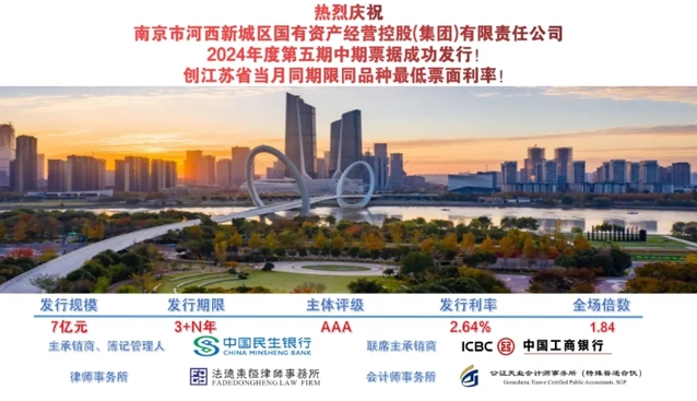 近期債券市場(chǎng)波動(dòng)較大,債券發(fā)行充滿不確定性,市場(chǎng)已有多筆債券取消發(fā)行。集團(tuán)財(cái)務(wù)管理部頂住市場(chǎng)壓力,多次與承銷機(jī)構(gòu)、投資者及合作金融機(jī)構(gòu)召開線上線下會(huì)議,研究發(fā)行策略,調(diào)整發(fā)行方案,最終成功發(fā)行24寧河西PPN001,24寧河西MTN004、24寧河西MTN005(永續(xù)中票)三筆債券,募集資金22億元,平均融資成本2.56%,低于最新一年期LPR利率54BP,更進(jìn)一步優(yōu)化了集團(tuán)債務(wù)期限結(jié)構(gòu)和品種結(jié)構(gòu),充分體現(xiàn)出集團(tuán)對(duì)融資品種的靈活運(yùn)用。