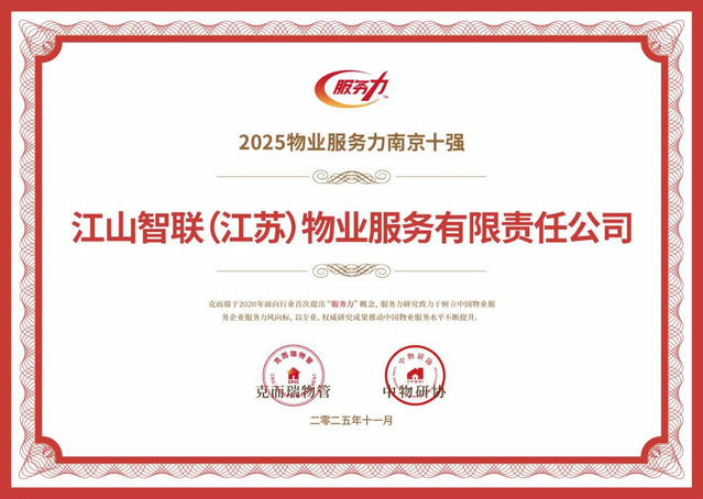 河西集團江山智聯(lián)物業(yè)憑借卓越的服務品質與前瞻的戰(zhàn)略布局,一舉斬獲2025南京國有物業(yè)服務力領先企業(yè)TOP1、2025江蘇省服務力市場運營領先企業(yè)TOP3、2025物業(yè)服務力南京十強、2025物業(yè)服務力江蘇省三十強、2025華東區(qū)域物業(yè)服務力百強企業(yè)、五項行業(yè)重磅榮譽。